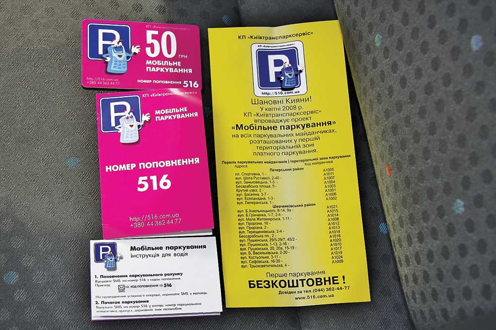 Чтобы заплатить за парковку своего автомобиля с помощью мобилки, для начала следует приобрести специальный стартовый пакет за 55 или 105 грн. В него входят скретч-карта, наклейка на лобовое стекло, детальная инструкция, как действовать при постановке автомобиля на стоянку, перечень и номера парковок столицы, где действует эта услуга. Стартовые пакеты продаются практически во всех киосках прессы, на автозаправках, в кассах станций метро, а первое время их можно купить у парковщиков на стоянках.