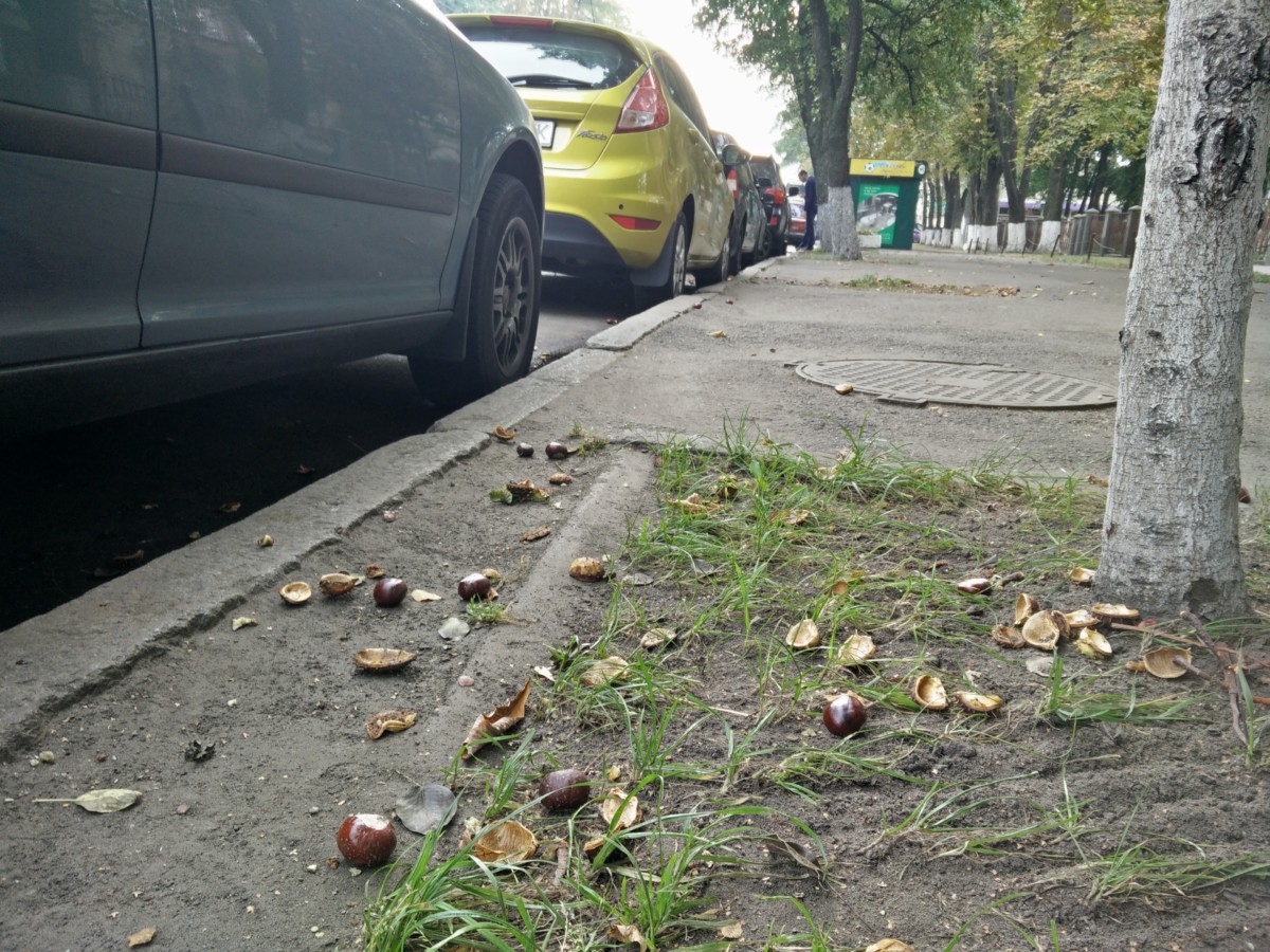 Але автомобілісти часто не помічають всієї цієї краси. Адже від неї – самі незручності. Опале листя доводиться постійно змахувати з авто, хоча це ще не критично. Є серйозніша загроза – падіння каштанів.