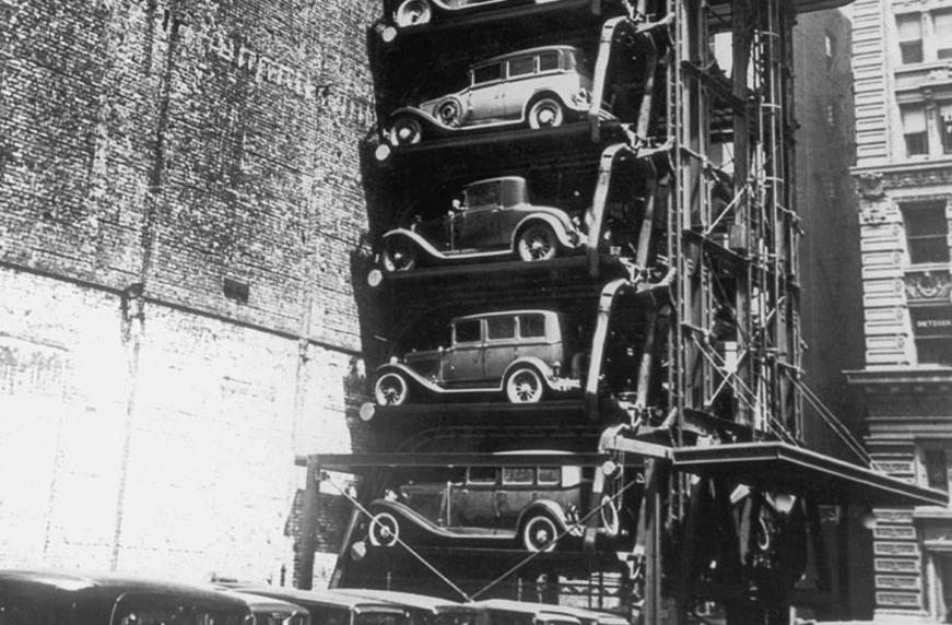 Уже на початку тридцятих років у пресі називали однією з головних причин утримання потенційних покупців від придбання особистого автомобіля проблеми з парковками. При тому, що вже на той момент в багатоповерхових гаражах не було нічого незвичайного.