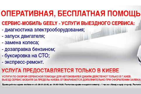 Теперь у владельцев Geely есть уникальная возможность воспользоваться услугой сервис-мобиль. Это сервисная скорая помощь с доставкой.