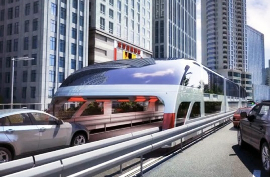Новый тип общественного транспорта, под которым могут ездить автомобили, показали в Китае