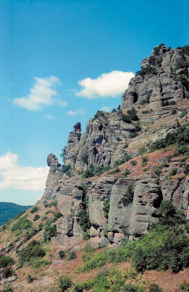 Еще одна скала, названная женским именем, – Екатерина Вторая или Голова Екатерины. При определенном ракурсе и соответствующем освещении в каменной глыбе можно разглядеть женский силуэт. На пологой вершине этой горы бушуют такие ветры, что стоять в полный рост жутковато. Но зато с нее, как и с соседней горы, открывается замечательный вид на Алушту, Лучистое, Чатыр-Даг, Юркины скалы и Северную Демерджи.