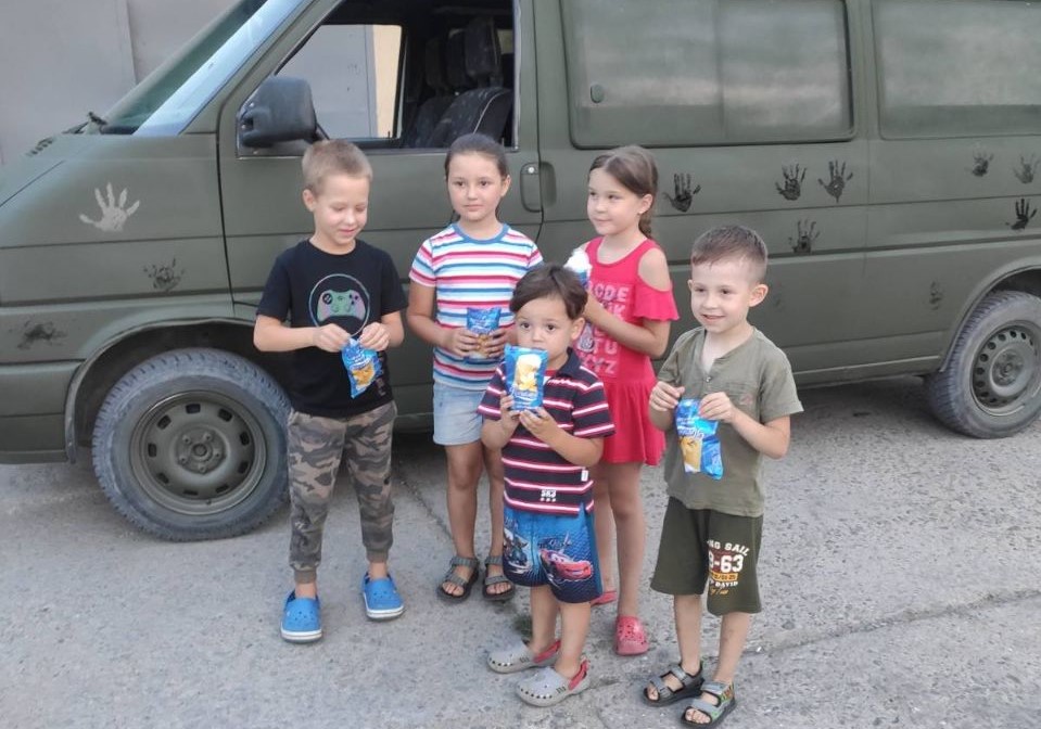 Дуже зворушливо, що один з автомобілів – мікроавтобус Volkswagen Transporter – допомагали готувати для фронту навіть дітлахи, які своїми долоньками на кузов наносили камуфляжне забарвлення.