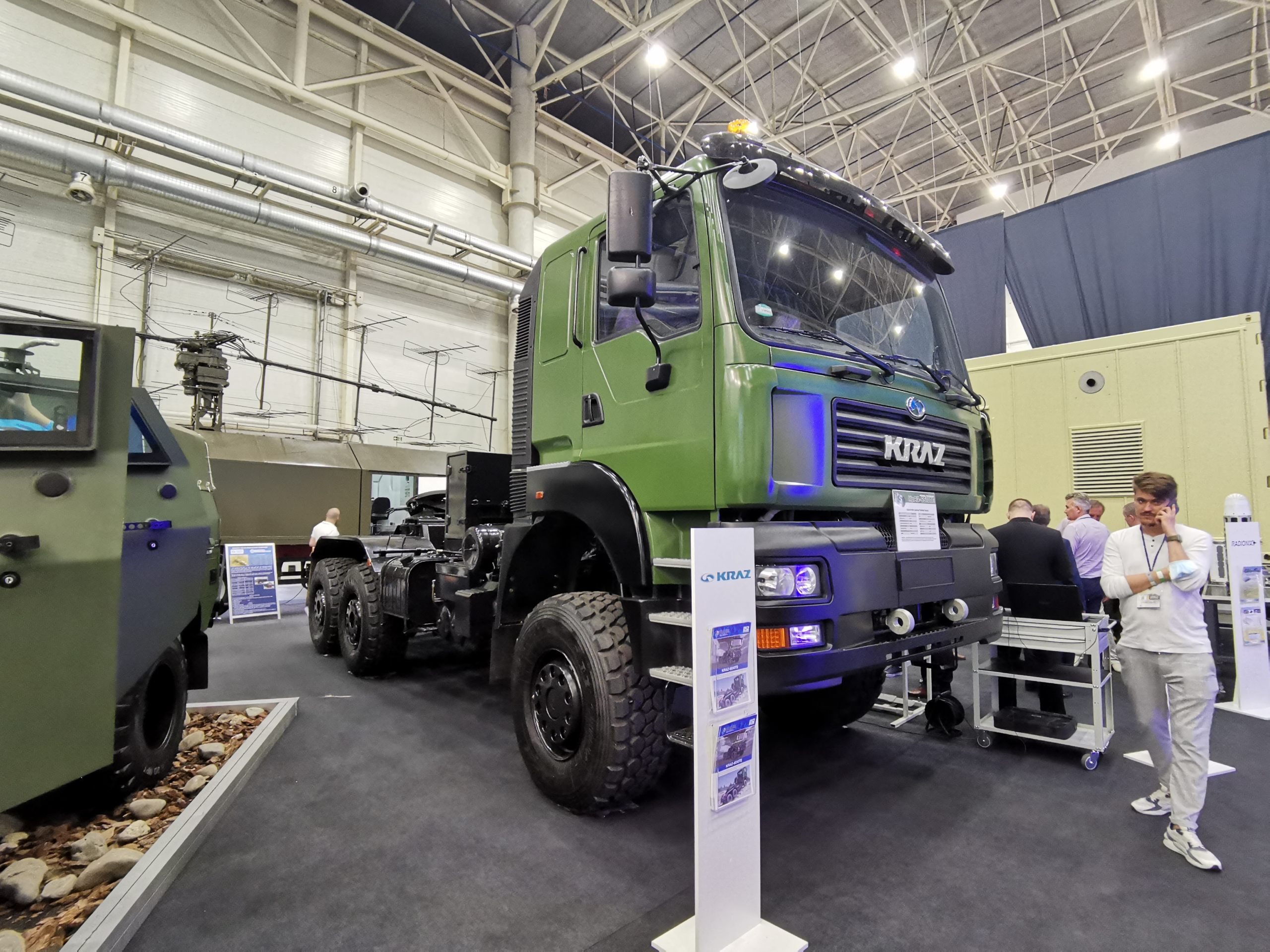 Кременчугский автозавод, также входящий в вышеупомянутую ассоциацию, представил на выставке три машины. В павильоне находится седельный тягач КрАЗ-6510ТЕ (6х6) с кабиной над двигателем. Снаряженная масса машины – 12 100 кг, Полная масса автомобиля – 29 100 кг. Нагрузка на седельно-сцепное устройство – 17 000 кг. Автомобиль может оснащаться турбодизелелем мощностью от 385 до 460 л. с. Коробка передач – автоматическая, 6-ступенчатая. Максимальная скорость составляет 65 км/ч. Преодолеваемый подъем – до 36%.