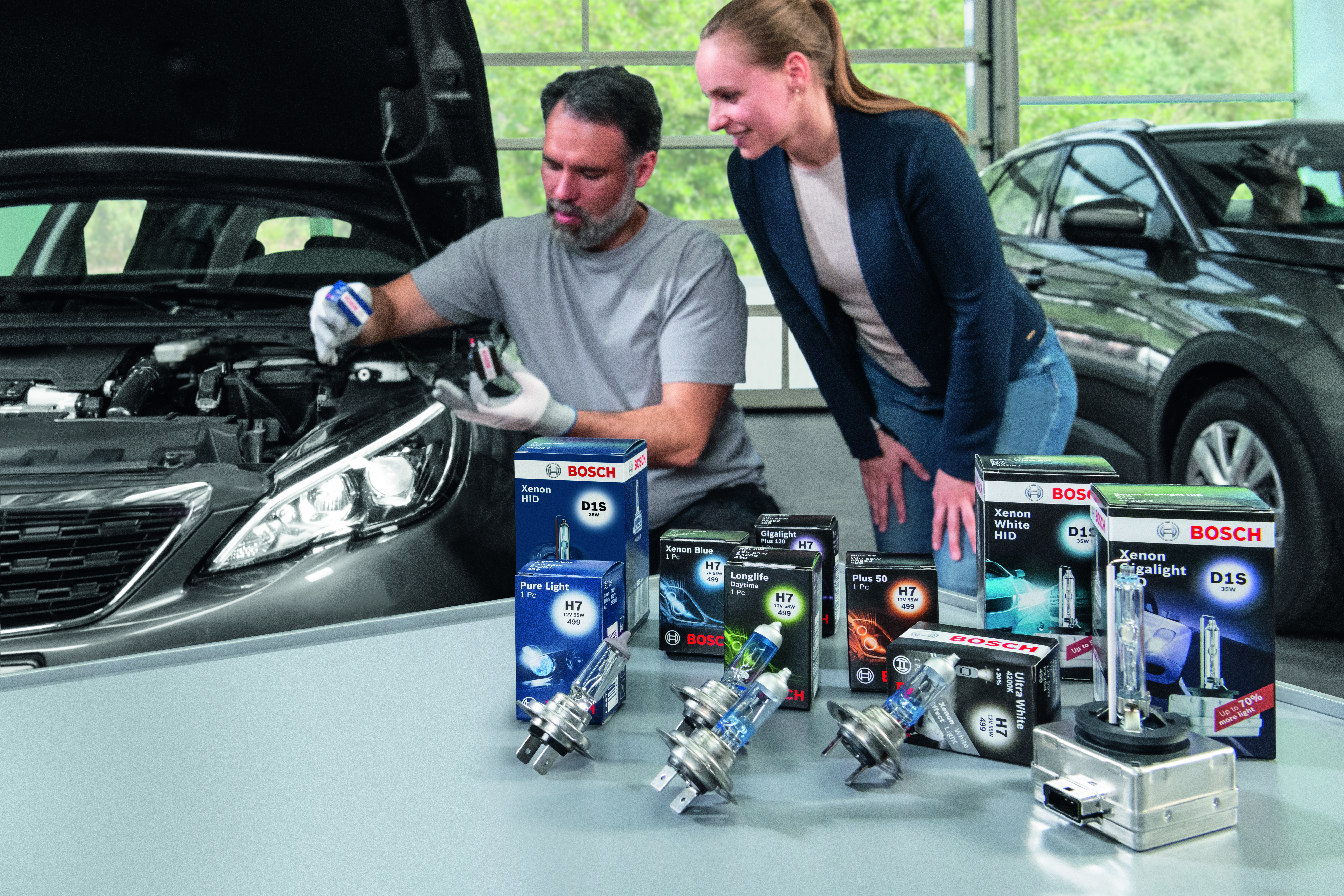Крім галогенових ламп Bosch має в асортименті газорозрядні моделі (“ксенон”) типу XID, а також дуже цікаву лампу на світлодіодній основі. Модель LED Gigalight призначена для використання поза шляхами загального користування. Маючи стандартний “галогеновий” цоколь H7, вона підходить для встановлення у звичайні фари. За рахунок її використання поліпшується освітлення дороги та знижується споживання енергії.
