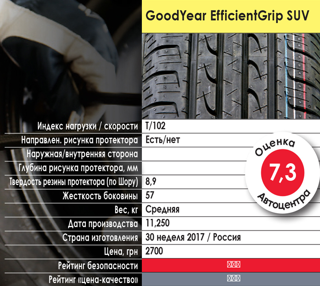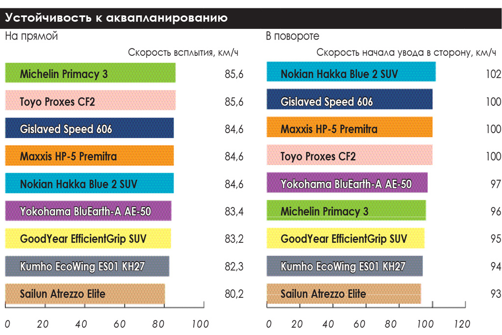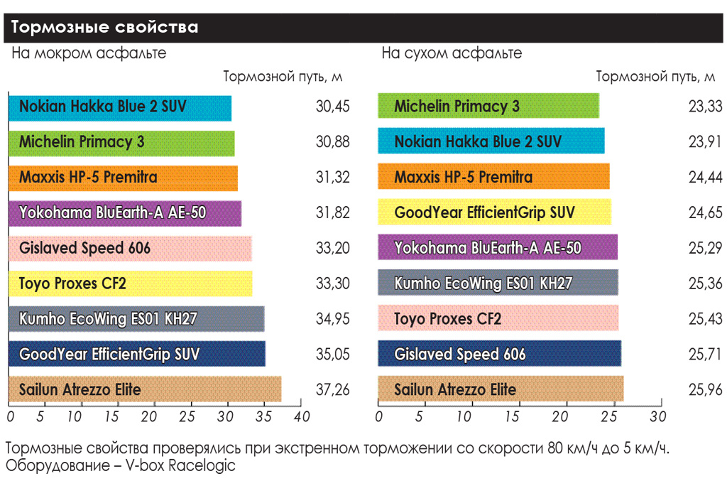 По три звезды безопасности получили шины Yokohama BluEarth-A AE-50, GoodYear EfficientGrip SUV и Gislaved Speed 606. Они немного отстали от лидеров во всех тестах и имеют не очень сбалансированные характеристики, поэтому получили всего по 3 звезды безопасности.