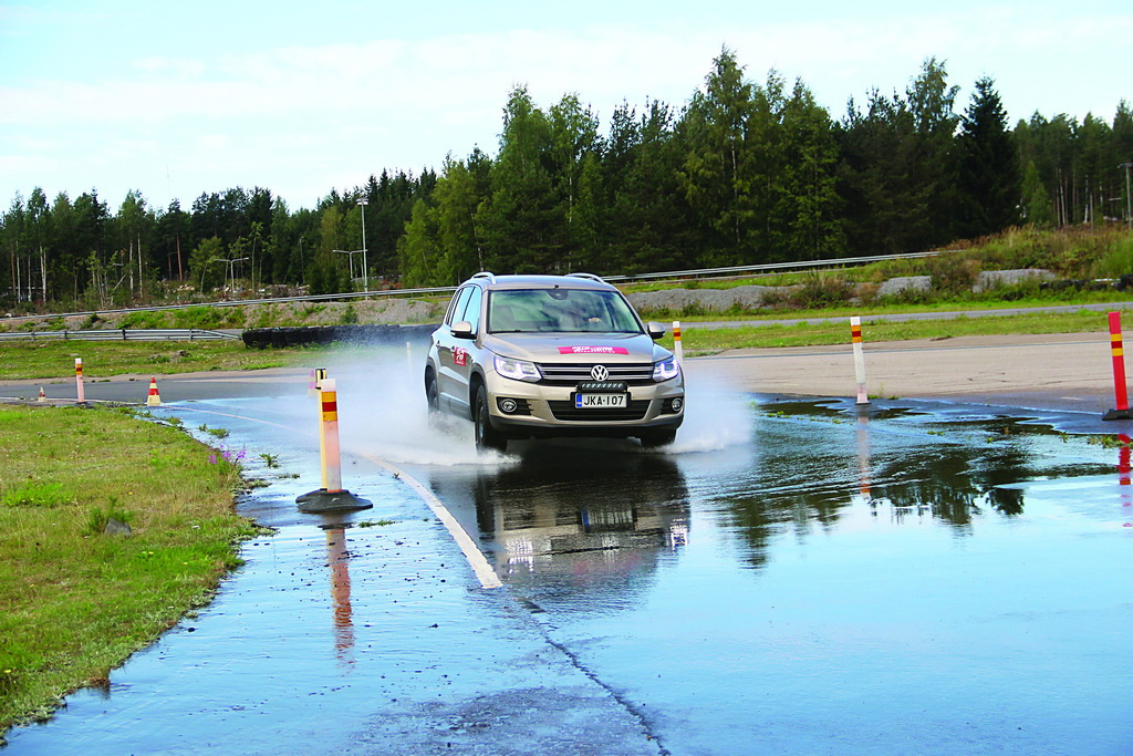 На шинах GoodYear EfficientGrip SUV мокрую извилистую трассу машина проходит по более широкой траектории, чем на шинах лидерах. На мокром проявляется заметная недостаточная поворачиваемость, реакции на повороты руля чуть замедленные, а времена на трассе нестабильные. На сухом асфальте хотя и позволяет совершать резкие маневры на достаточно большой скорости, но при этом возможны как заметные сносы, так и небольшие заносы.