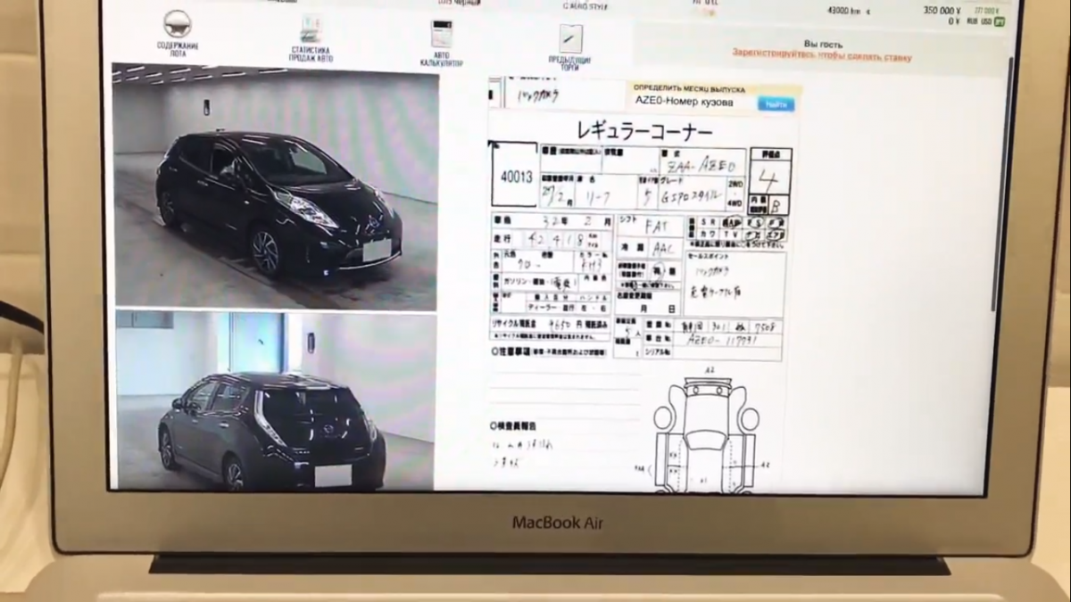 BMW уже продали, а вот Лиф пока в гараже пока не прописался – машину буквально на днях купили на японском аукционе, поэтому доехать она еще не успела. Выбор пал на черный Nissan Leaf в топовой комплектации (кожаный салон, камера заднего вида, солнечная панель и др.). Год выпуска автомобиля – 2015, пробег – 43 000 км. Обошёлся электромобиль чуть меньше чем в 7000 долларов.