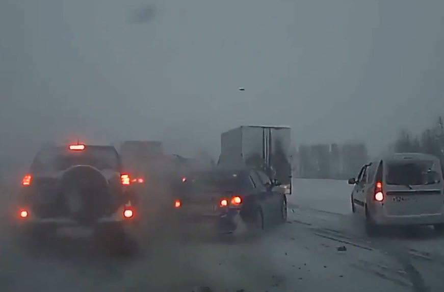 Скорее всего, впереди находится еще несколько автомобилей, а автор видео не был последним в этом снежно-железном месиве.