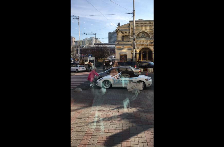 В центре столицы девушка разукрасила и разбила топором Porsche (видео)