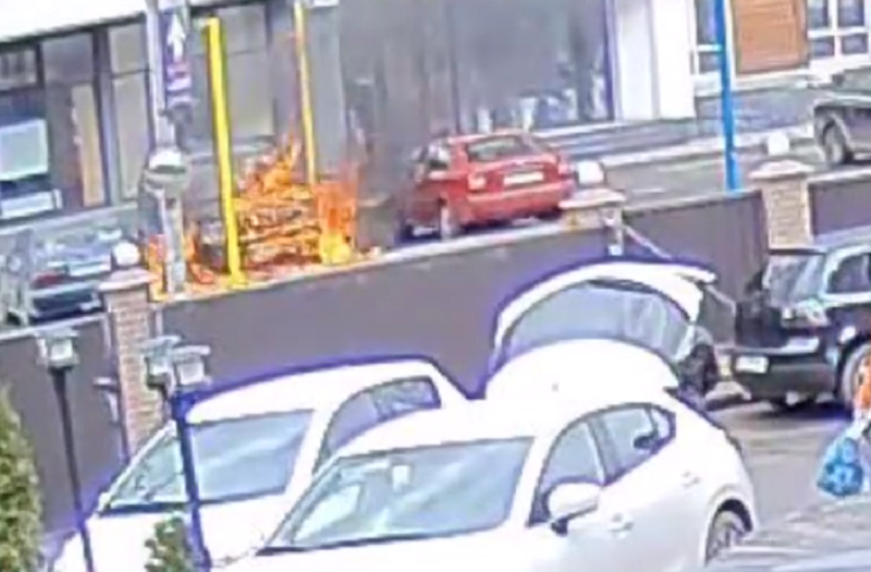 На видео можно заметить, как неизвестный подходит к внедорожнику и оставляет что-то на капоте. Через считанные секунды автомобиль загорается. Причем происходит все это среди бела дня (в 10.40).