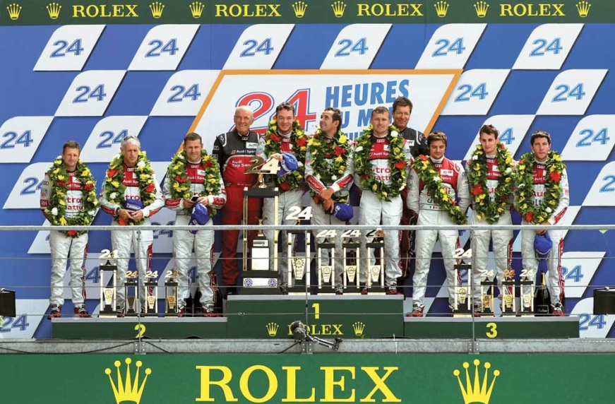 Что же до пилотов Audi, оставшихся без основных соперников и предоставленных самим себе, то для них последующие часы гонки не стали легкой прогулкой. Каждый экипаж «колец» столкнулся с теми или иными техническими неполадками, а в авариях разной степени тяжести побывали и Марсель Фасслер, и Марк Жене, и Алан МакНиш. И все же, несмотря на пережитые неприятности, весь квартет Вольфганга Ульриха добрался до финиша, полностью оккупировав подиум.