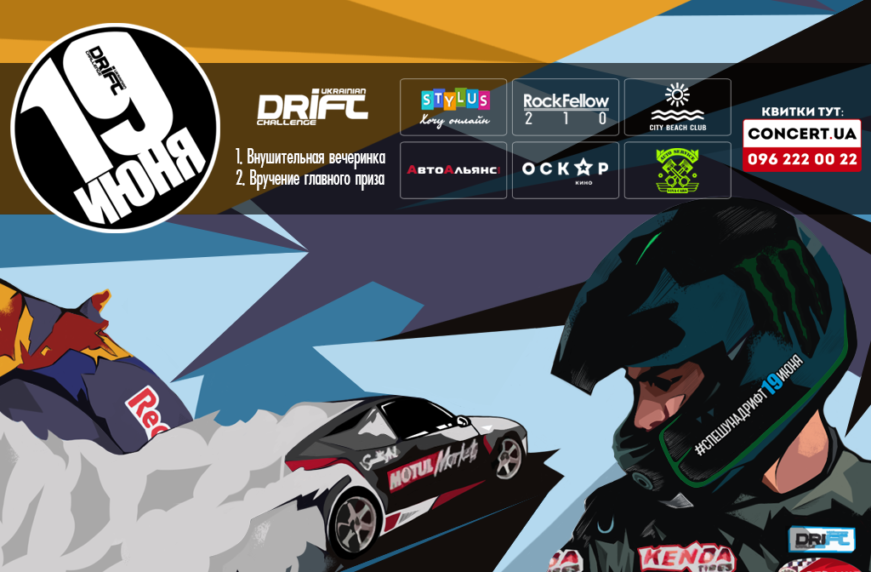Этот день соберет всех неравнодушных к украинскому автоспорту в целом и любителей дрифт-шоу в частности. Дрифтинг, он же Дрифт – это точка сбора не только профессионалов этого вида спорта, и не только из Украины, а также и любителей и новичков, для которых наше шоу станет настоящим рывком, откровением и следующей ступенью. Однозначно самое ожидаемое событие в автоспорте соберет огромное количество зрителей, которые смогут узнать, что может настоящий пилот за штурвалом прокачанного дрифт-кара и увидеть по-настоящему качественное автошоу и профессиональный дрифт.