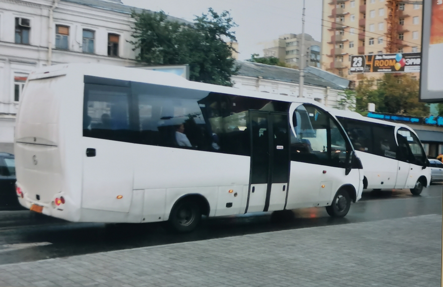 Такие модели несколько лет назад были весьма популярны у отечественных перевозчиков. В 2013 году на столичных улицах нам удалось сфотографировать сразу два подобных автобуса в одном кадре, причем на ходу. Интересно, что один из них был в пригородном исполнении – с двустворчатой дверью по центру.
