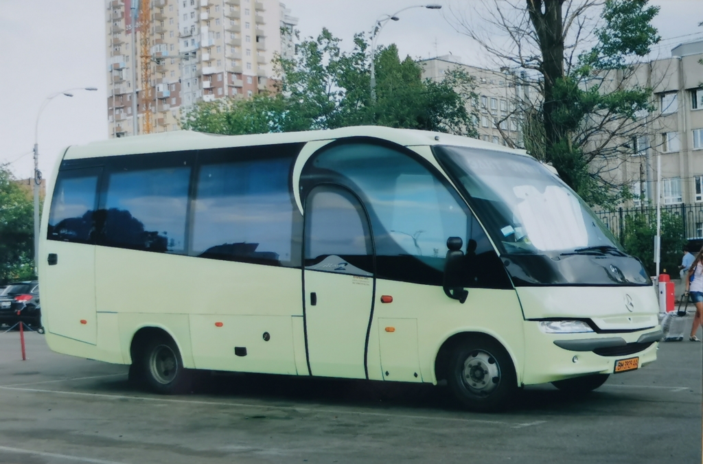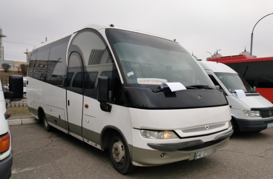 Замеченный на днях в Киеве автобус Mago 2 приехал из Днепропетровской обласьт. В его основе лежит шасси Mercedes-Benz Vario О815D, оснащенное 4,3-литровым дизельным двигателем мощностью 151 л. с.
