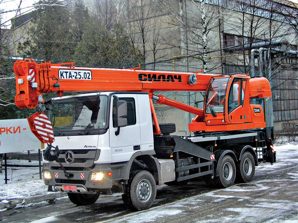 Дрогобычский завод автокранов недавно выпустил новинку – КТА-25.02 «Силач» на шасси Mercedes-Benz Actros. Данная модель – это технический компромисс между оптимальной грузоподъемностью 25 тонн и увеличенными вылетом стрелы и высотой подъема.