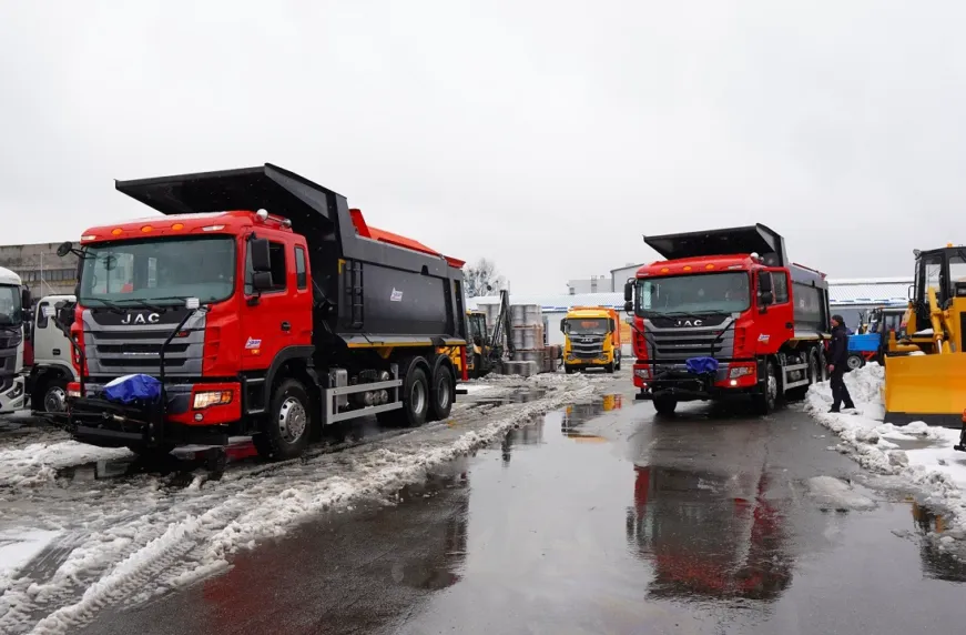Досрочно пришедшая зима с обильными снегопадами заставила вывести на дороги различную спецтехнику. Последней становится все больше и, что весьма отрадно, за счет отечественных производителей. На днях компания «Будшляхмаш» поставила заказчику два новейших дорожных комбинированных автомобиля МДК 31-38, изготовленных на базе самосвала JAC N350 (6х4).