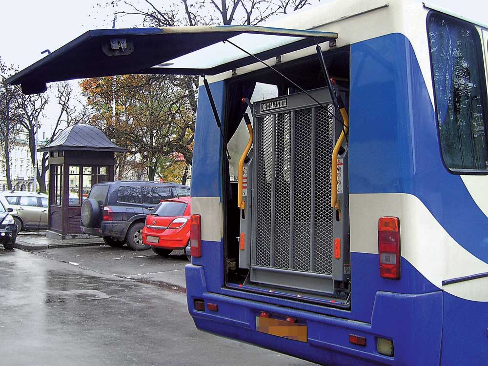 Во Львове 30 октября официально презентовали автобус А079 «Эталон» для перевозки людей с ограниченными возможностями. Инициатором и исполнителем выступил перевозчик «Шенгофер и Компания», владеющий парком из 25 машин и обслуживающий пригородные маршруты. Технические специалисты компании разработали оптимальное решение для выполнения норм безопасности по перевозке пассажиров. Тыльную стенку кузова автобуса основательно переработали и усилили для создания широкого дверного проема. Открытие двери вверх позволило сделать свободным доступ и защитить человека в коляске от непогоды во время погрузки или выгрузки. Кресла в кормовой части автобуса убрали, а на их место установили гидролифт марки Dhollandia. Первым пассажиром стал представитель Национальной ассамблеи инвалидов Украины Ярослав Грыбальский (на фото – справа). А в ближайших планах директора предприятия Владимира Шенгофера (на фото – в центре) – подготовить еще один автобус с подъемником.