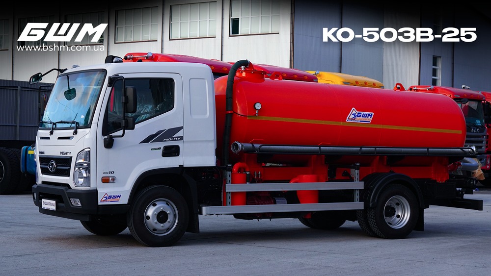 Среднетоннажники Hyundai EX10 Mighty продолжают комплектоваться различными кузовными надстройками, и что немаловажно отечественного производства. На днях предприятие «Будшляхмаш» изготовила на базе этой модели вакуумный, он же ассенизационный автомобиль – КО-503В-25.