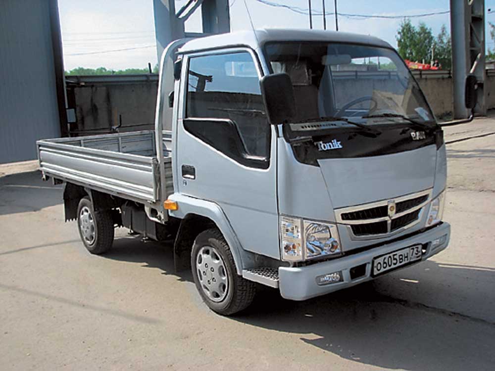 приступает к выпуску нового малотоннажного грузовика для города – модели TONIK. Автомобиль будет выпускаться в нескольких модификациях: борт, борт с тентом, европлатформа, изотермический, промтоварный и хлебный фургоны. При снаряженной массе в 1740 кг и длине грузовой платформы 3050 мм он может перевозить до 1 т груза. Машина отличается низкой погрузочной высотой – всего 880 мм. Под кабиной грузовика стоит четырехтактный бензиновый двигатель. По желанию владельца может быть установлено газобаллонное оборудование. Водитель должен оценить эргономичную панель приборов, водительское кресло и регулируемую рулевую колонку, большую площадь остекления и широкий дверной проем.