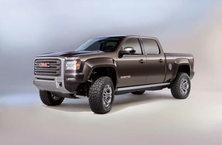 На прошедшем в середине января Детройском автосалоне был представлен яркий пикап-концепт GMC Sierra All Terrain HD. Машина изготовлена на базе серийной модели GMC Sierra 2011 года. Снаружи автомобиль привлекает внимание иной широкой решеткой радиатора, интегрированной в передний бампер с четко выраженным поддоном. Вся наружная светотехника, включая «противотуманки», основана на LED-технологии. Благодаря 35-дюймовым колесам и перенастроенной подвеске клиренс возрос на 76 мм – до 536 мм. Более короткие передние и задние свесы увеличили углы въезда и съезда. Пикап оснащен новой турбодизельной «восьмеркой» Duramax – 6,6 л (400 л. с.), выдающей максимальный крутящий момент 1037 Нм при 1600 об/мин. С двигателем агрегатируется 6-ступенчатая автоматическая КП Allison 1000. Суперпикап GMC Sierra All Terrain HD оборудован 5-местной кабиной и имеет грузоподъемность 2,7 т. При этом он может буксировать прицеп полной массой до 6 т.