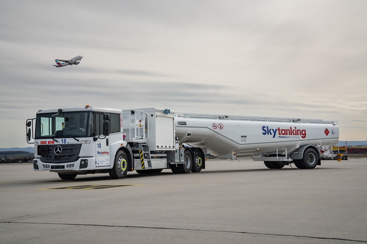 Представлен первый в мире авиационный топливозаправщик на электрическом грузовике Mercedes-Benz