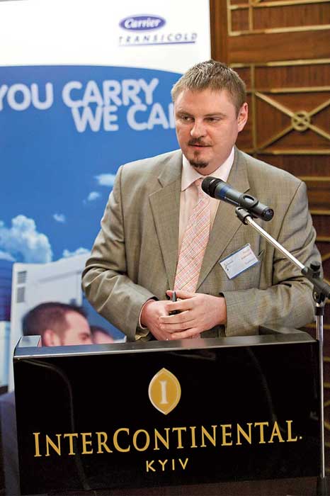 В Киеве 1 ноября прошла первая Международная конференция «Холодная логистика в Украине». Участниками форума стали представители крупнейших компаний – владельцев холодных складов, транспортно-экспедиционных фирм, перевозчиков, производителей охлажденных продуктов, поставщиков холодильной техники. Среди них был и Александр Пеклин, директор известной компании «Трасхолод» – официального дистрибьютора Сarrier Transicold в Украине (на фото). «Цель проведения конференции, – сказал Пеклин, – объединение крупнейших и наиболее активных участников цепи поставок товаров, которые требуют специального температурного режима хранения. Проведение подобных собраний дает возможность сесть за стол переговоров и обсудить основные проблемы в данной отрасли. Среди них в первую очередь следует отметить повышение качества поставок охлажденных и замороженных продуктов питания. Кроме того, довольно актуальным является вопрос о снижении общей суммарной стоимости логистики этого вида продукции». На прошедшей Международной конференции «Холодная логистика в Украине» рассматривались, в частности, такие актуальные вопросы, как частые колебания тарифов на перевозки, законодательные ограничения на совместную перевозку различных видов продуктов и ввоз холодильной техники.