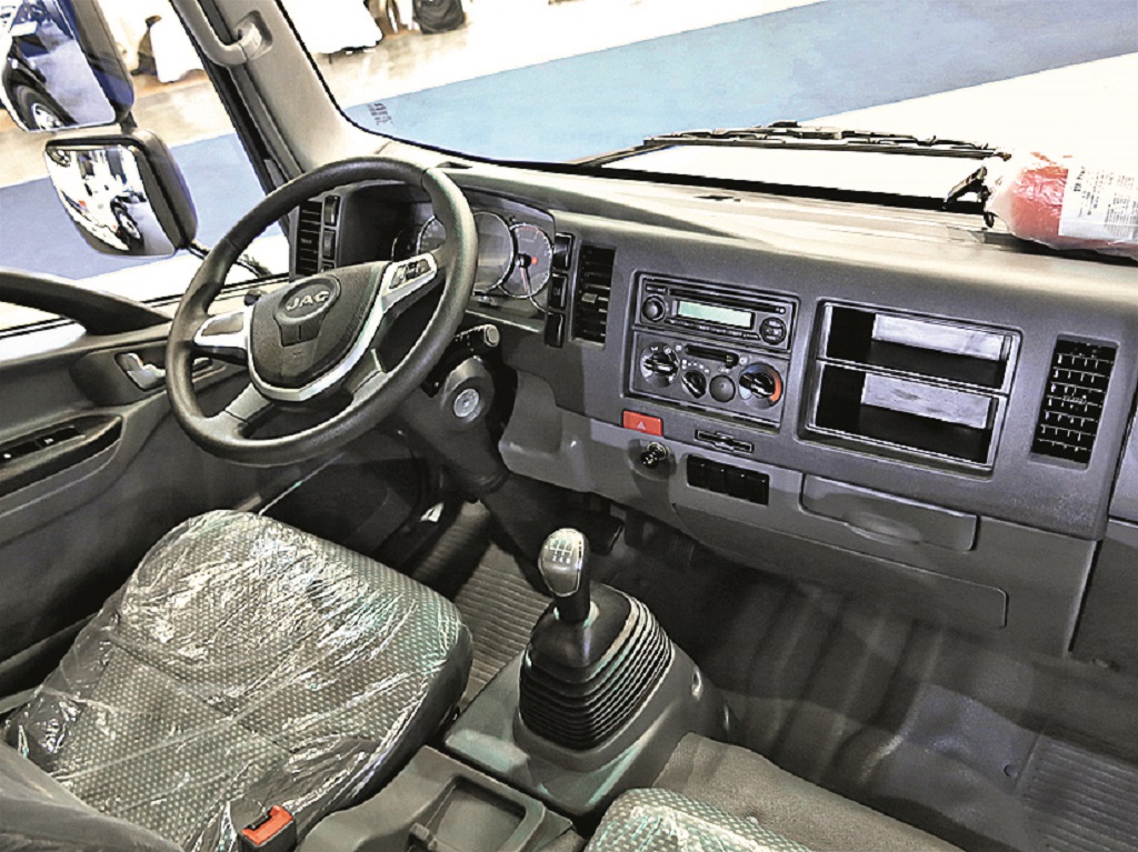 В кабине JAC N120 модерная приборная панель и многофункциональный руль.