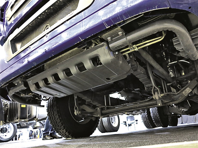 Под бампером самосвала Howo T5G – стальная защита картера двигателя.