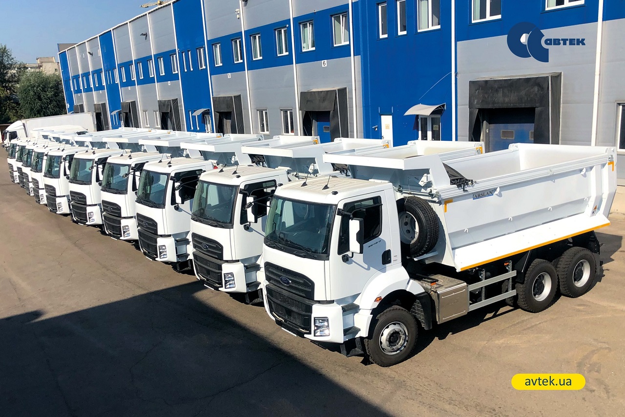 Шасси Ford Trucks модели 3542D DC (6х4) оснащены 16-кубовыми кузовами известного турецкого производителя Arslan. Машины рассчитана на полную массу 35 т и укомплектованы 12,7-литровым турбодизелем Ecotorq мощностью 420 л. с.