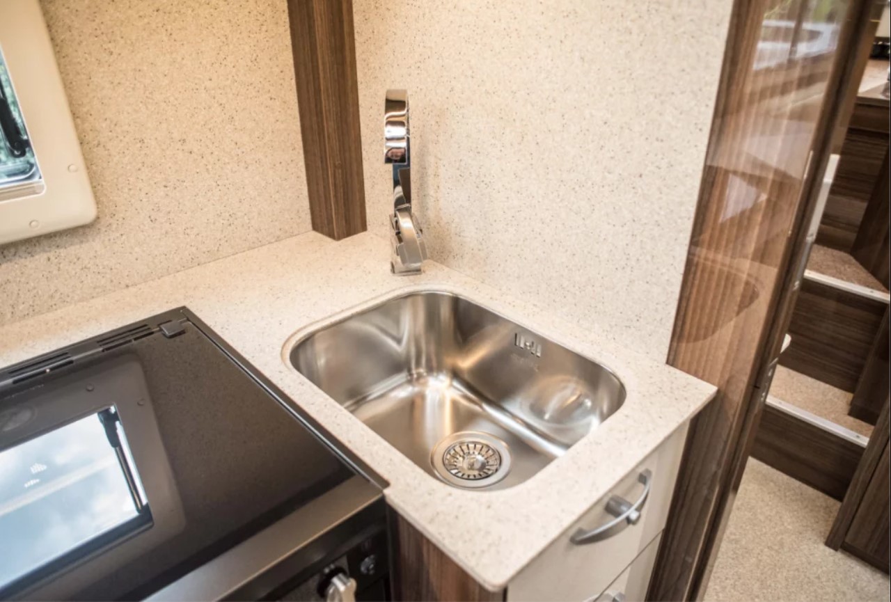 В базовое оснащение входят бак с чистой и использованной водой на 500 л и 90 л соответственно, дополнительный бак на 120 л, бензиновый генератор на 2,6 кВт, газовая плита, холодильник на 142 л. Имеется также мощный жидкостный отопитель, а также пол с подогревом и, конечно, же кондиционер.