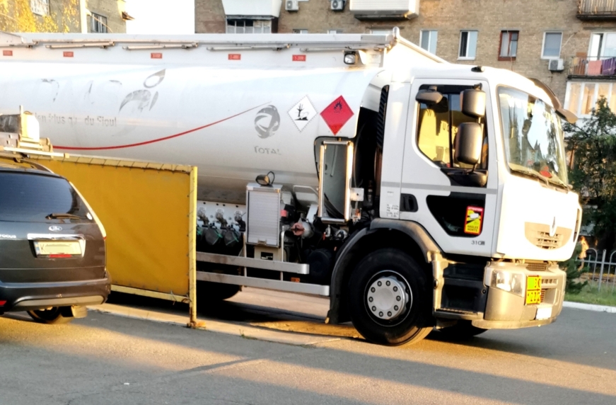 Так, на представленном топливозаправщике Renault Premium Distribution 310, работающем в одной из украинской сети АЗС, водитель прикрепил наклейку на правую дверь, в нижнем правом углу. Казалось бы, это ее законное место. Однако в данном случае в этой части двери установлено дополнительное окно для лучшего обзора около колесного пространства, в частности тротуара.