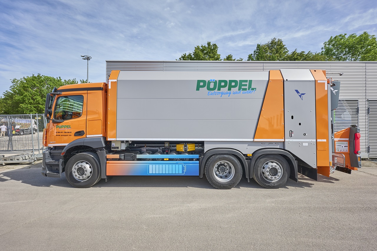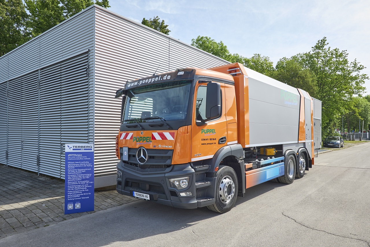 В этом году на выставке IFAT в Мюнхене, крупнейшей в мире смотре экологических технологий, компания Pöppel получила свой новый аккумуляторный электромобиль Mercedes-Benz eActros 300 с кузовом для сбора мусора от Terberg HS.