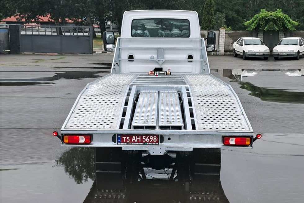 Надстройка оборудована электрической лебедкой, выдвижными трапами и боковыми противоподкатными брусьями. Эвакуаторы такого типа могут монтироваться на разных шасси полной массой от 3,5 т – в частности модели Peugeot Boxer и Сitroen Jumper.