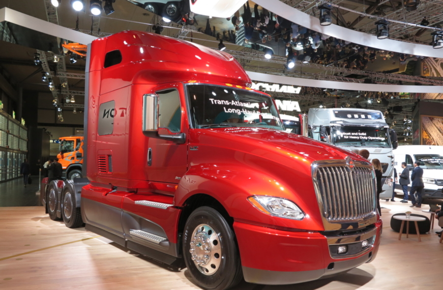 Traton AG с недавнего времени также владеет почти 17% акций Navistar – крупного производителя грузовиков и автобусов из США. Оказывается, Traton AG будет поставлять силовые агрегаты для заокеанского партнера, что позволит последнему сэкономить за пять лет до 500 млн долларов. На стенде в Ганновере был показан один и эффектных продуктов Navistar – магистральный капотный тягач International семейства LT, с традиционным обилием хрома, пароходными трубами и огромным спальником.