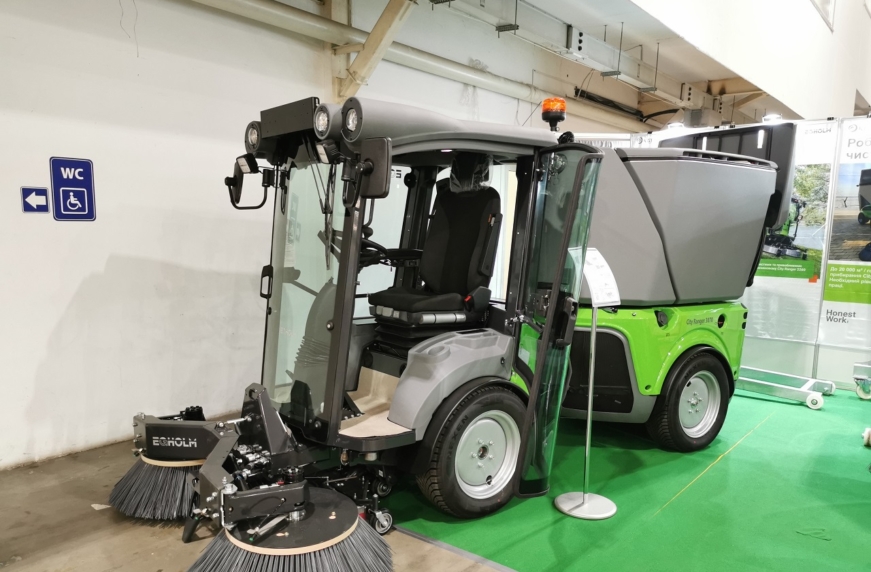 На недавней выставке «КоммунТех-2023» в Киеве можно было увидеть компактные подметально-уборочные машины от датского производителя Egholm. Начнем с более мощной модели City Ranger 3070. Благодаря компактным размерам и шарнирно-сочлененной раме она имеет внутренний радиус разворота всего 165 см. Здесь постоянный привод на четыре колеса и экономичный дизельный двигатель Perkins в 74 л. с. Собственный вес составляет 1800 кг, а грузоподъемность 1200 кг. Рабочая скорость достигает 40 км/ч.