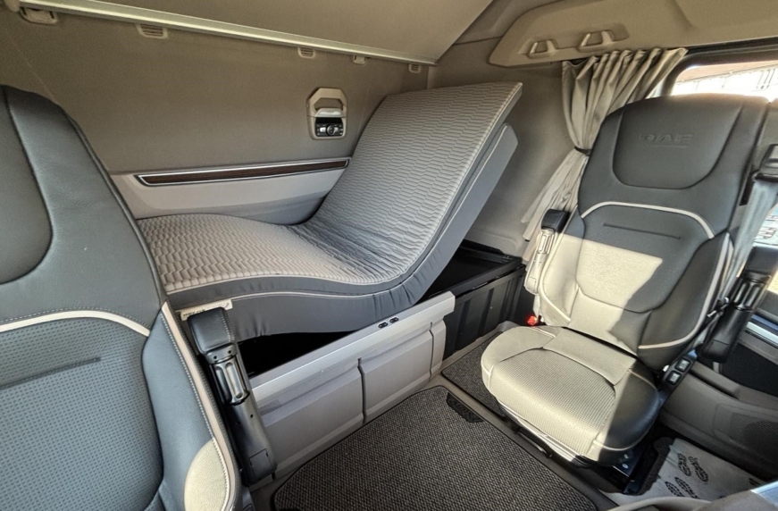 А на стоянке водитель в полной мере сможет оценить анатомическую спальную полку DAF Relax Bed, наклон которой легко регулируется с помощью электропривода. Для приготовления пищи будет как нельзя кстати микроволновая печь. А надежную безопасность от взлома в ночное время обеспечит дополнительный замок на дверях – Night Lock.