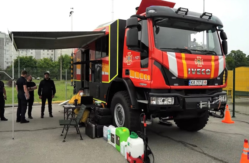 В ходе учений ГСЧС продемонстрировало новейший автомобиль радиационной и химической разведки СМРХР-В на полноприводном шасси IVECO EuroCargo 150-250. Машина изготовлена отечественным предприятия «Валидус Спецавто» и оснащена передовым оборудованием для оперативного анализа радиационной и химической разведки в радиусе до 10 км, аппаратурой для отбора проб, а также средствами индивидуальной защиты. Этот, не имеющий аналогов в Украине автомобиль был приобретен при спонсорской поддержке Немецкого общества международного сотрудничества (GIZ).