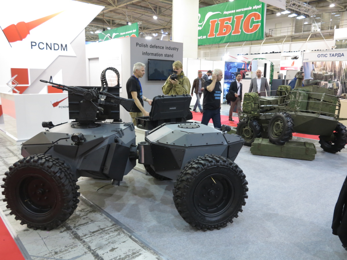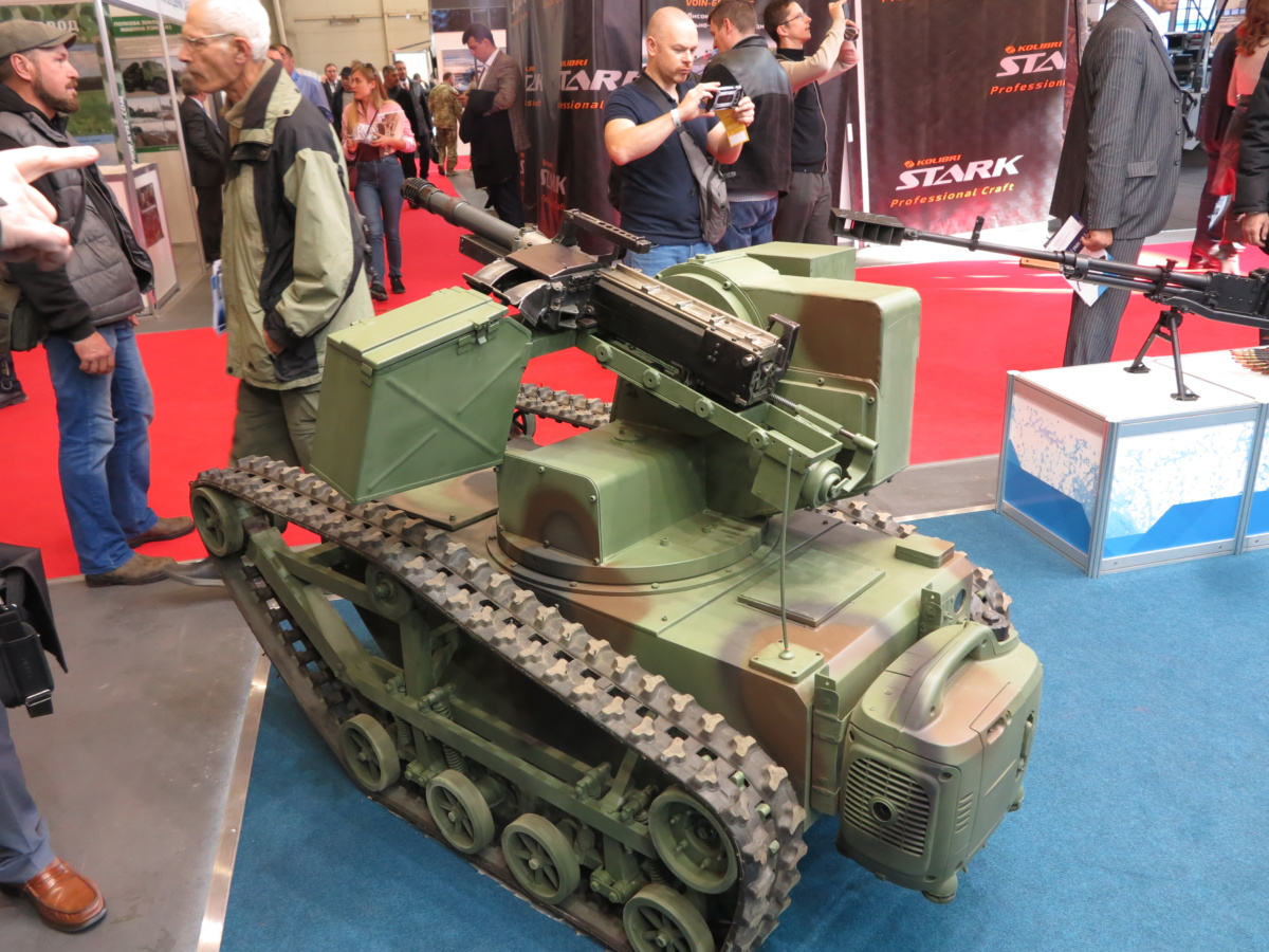 А на стенде Завода «Кузница на Рыбальском» представлен боевой дистанционно управлемый модуль «Пиранья». Он предназначен для выполнения задач огневого поражения и разведывательных целей. Также может транспортировать грузы, эвакуировать раненых и доставлять боеприпасы.