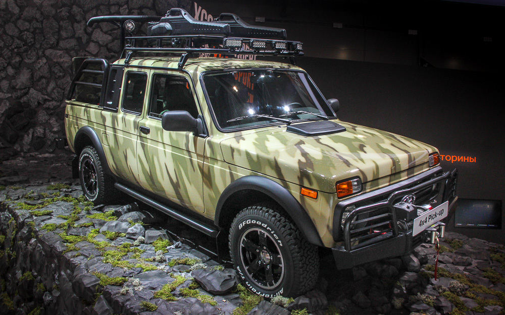 Отметим, что еще осенью 2016 года на Московском автосалоне был показан подобный пикап – Lada 4×4 Pick-Up. Эта машина была разработана с участием компаний «Супер-Авто» и «Лада Спорт» и предназначалась исключительно для охотников. Автомобиль получил двухрядную кабину и мощный трубчатый каркас в кузове.