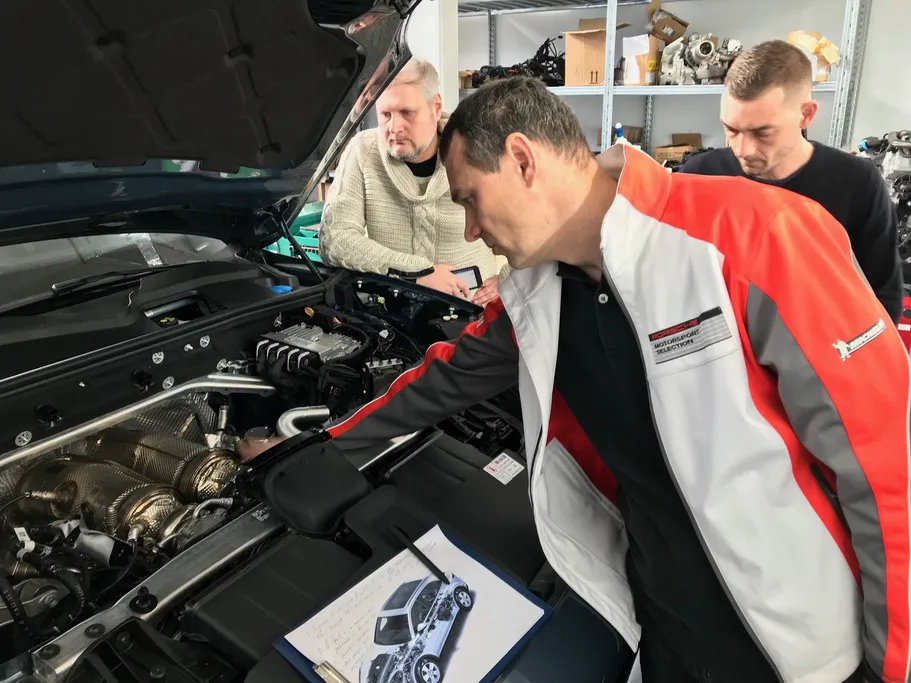 И только во время специального тренинга, который для нас провел международный технический тренер Porsche в Учебном центре Виннер, мы можем разобрать часть машины и заглянуть во внутрь.