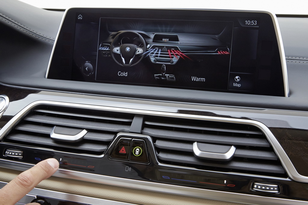 В 90-е годы дополнительно к привычным регулировкам климат-контроля компания BMW стала использовать на своих авто механический ролик в дефлекторах обдува. Он позволял, не меняя заданной температуры, направлять через центральные дефлекторы более теплый или холодный воздух. Эта удобная функция сохранилась в «семерке», но регулируется поток сенсорным ползунком.