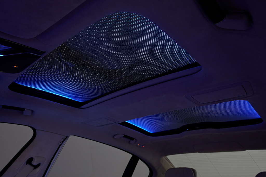 Везде в салоне различные источники акцентного и рассеянного света. Есть они и в опционной панорамной стеклянной крыше Sky Lounge. Это придает интерьеру BMW 7-й серии характер современной гостиной.