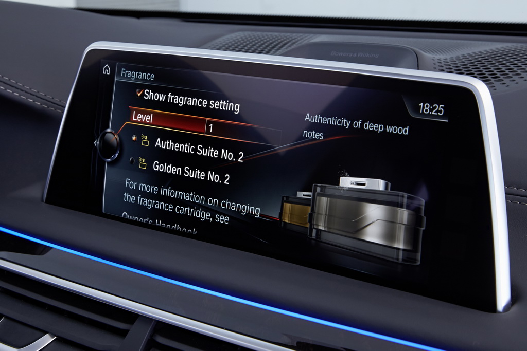 Специально для нового BMW 7-й серии разработано восемь разных ароматов четырех композиций, но используются поочередно только два. А выбрать их можно через меню iDrive и привязать к своему профилю наряду с положением кресла, руля и зеркал.