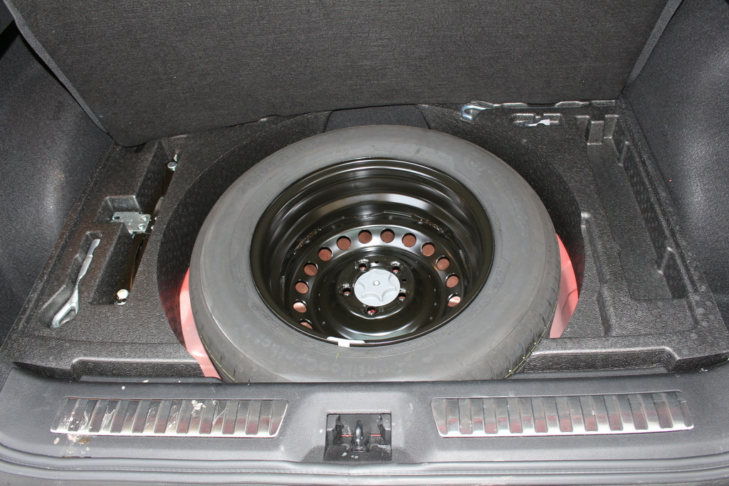 Под полом багажника украинских машин – полноразмерное колесо с 16-дюймовым диском, органайзер с инструментами. Поэтому, в отличие от европейских авто, объем багажника не 472 л, а 409 л.
