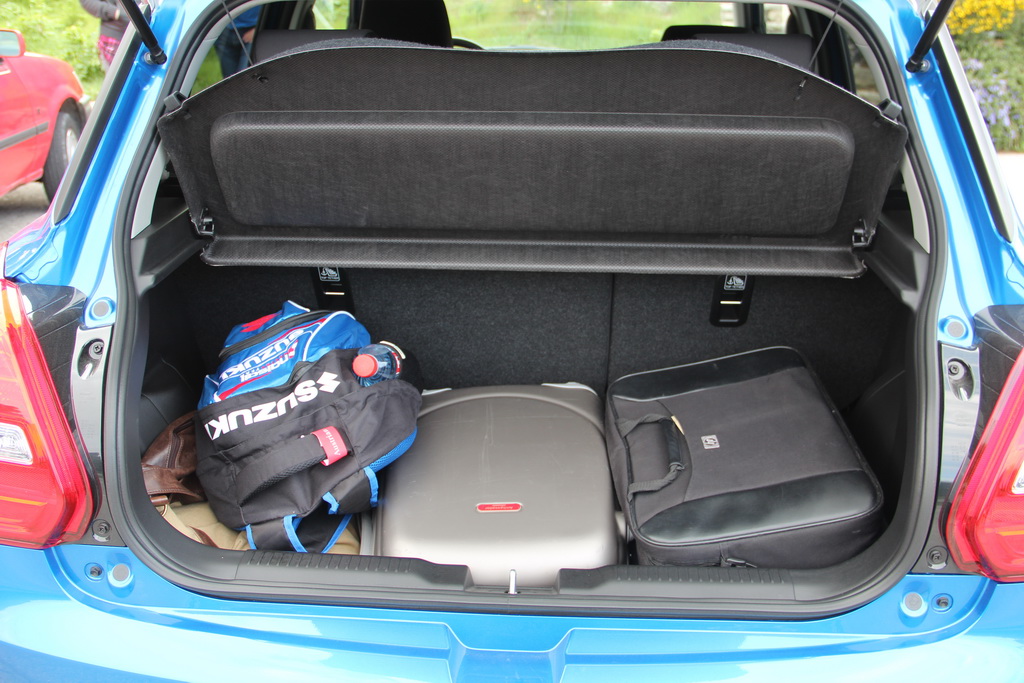 А ещё – объем. У Swift оригинальная форма, лобовое стекло не так завалено, как у многих хетчбэков, массивный низ, и снаружи возникает ощущение, что два взрослых человека тут будут толкаться плечами даже на передних сиденьях. Ничего подробного! Места предостаточно, как в ширину, так и в длину. Наши самые высокие автожурналисты были приятно удивлены: при росте 190-195 см в Swift можно размещаться свободно, и задним пассажирам не придётся поджимать колени под подбородок (расстояние между рядами увеличено на 20 мм). И держать сумки на коленях тоже не придется: багажник в новой версии увеличился почти на четверть, с 211 л до 265 – тоже, честно говоря, не бог весть что, но по меркам класса уже не плохо.