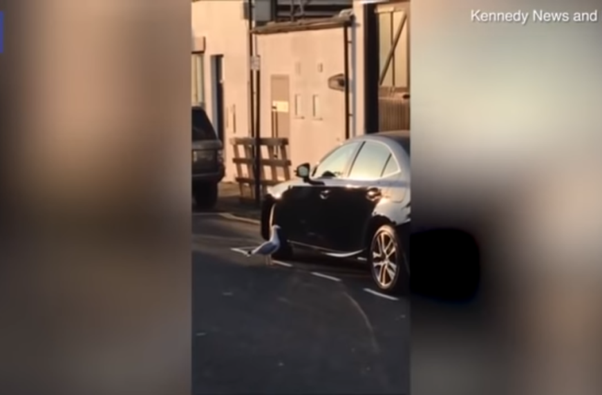 Агрессивная чайка заклевала дорогой автомобиль (видео)