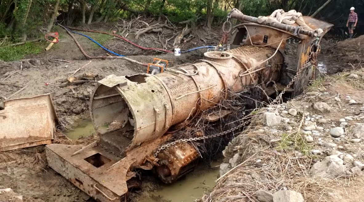 Извлечение паровоза из-под слоя ила оказалось делом непростым. По словам местных энтузиастов, пришлось привлечь тяжелую технику, чтобы откачать воду и достать «старичка» из илистого дна реки. Процесс усложнили корни деревьев, которыми за эти годы успел «обрасти» локомотив. Их пришлось рубить лопатами и топорами, а сам паровоз отмывать, поливая водой из шлангов. В дальнейшем они планируют восстановить паровоз, хотя, судя по фото, это кажется невозможным.