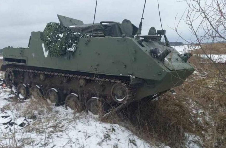 На этот раз рашисты бросили бронированную «амфибию». Это уникальный трофей! БТР-МДМ «Ракушка» построен на шасси боевой машины десанта БМД-4М. Он предназначен для перевозки 15 человек (2 члена экипажа +13 десантников) и способен передвигаться по воде со скоростью 10 км/ч. Стандартное вооружение включает два 7,62-мм пулемета ПКТМ.