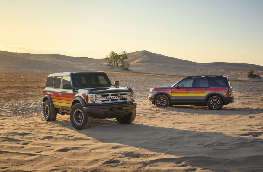 Впервые яркую “градиентную” версию компания подготовила в 2023 году для Ford Bronco Sport. Теперь пришла пора примерить красочную ливрею на “большом брате”. Bronco Free Wheeling получил декоративные аппликации, дверные ручки в цвет кузова, серебристую облицовку радиатора Iconic Silver с красной надписью Bronco, черные 17-дюймовые стальные колесные диски. Также покупатели могут дополнительно заказать пакет Sasquatch, в который входят черные алюминиевые диски с красной окантовкой по краям. Черная съемная крыша Shadow Black доступна вместе со стандартным мягким верхом и жесткой крышей в цвет кузова.